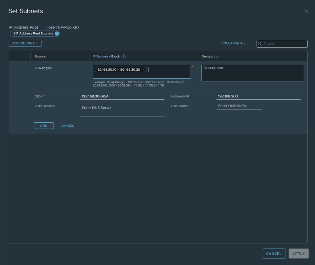 The first pool will be referred to in the Transport Node Profile used for esxi03: