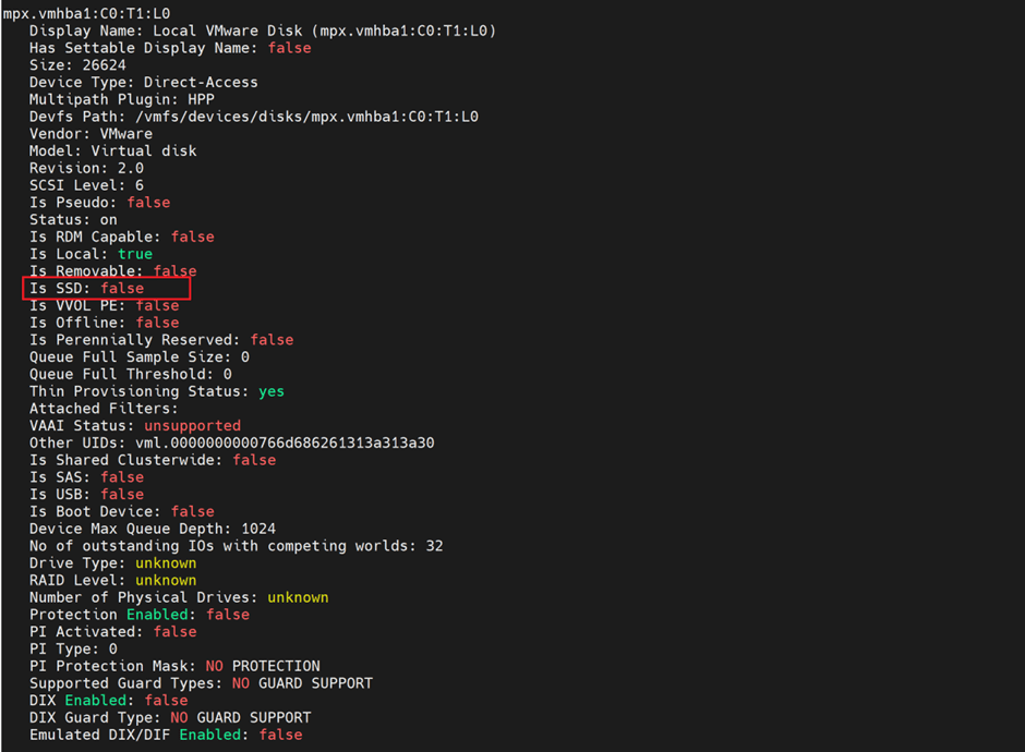 esxcli storage nmp satp rule add -s VMW_SATP_LOCAL -d mpx.vmhba1:C0:T1:L0 -o enable_ssd esxcli storage core claiming reclaim -d mpx.vmhba1:C0:T1:L0