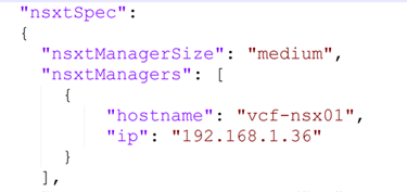 - 1 NSX manager (the reason here, is that I’m using one NSX manager, I modified the JSON file for bringup to include one NSX manager only)
