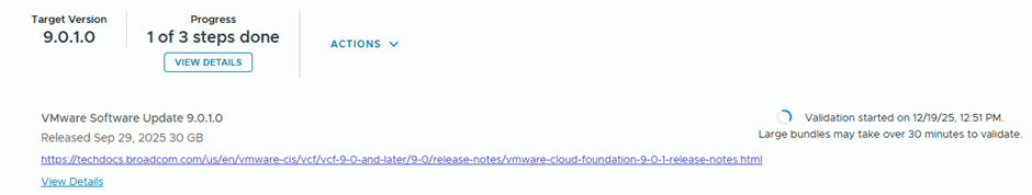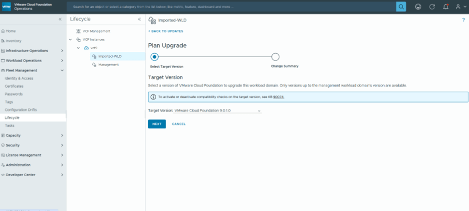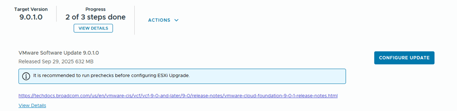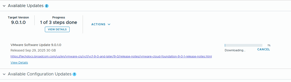 In the previous blog, we successfully imported a vSphere enviroment into VCF9 via VCF Operations. In this blog we are going to upgrade the imported workload domain to the recent VCF version 9.0.1