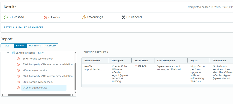 Well, I believe most if this errors might be related to having a nested environment, I’ll just proceed with the ESX upgrade and see what happens 😊