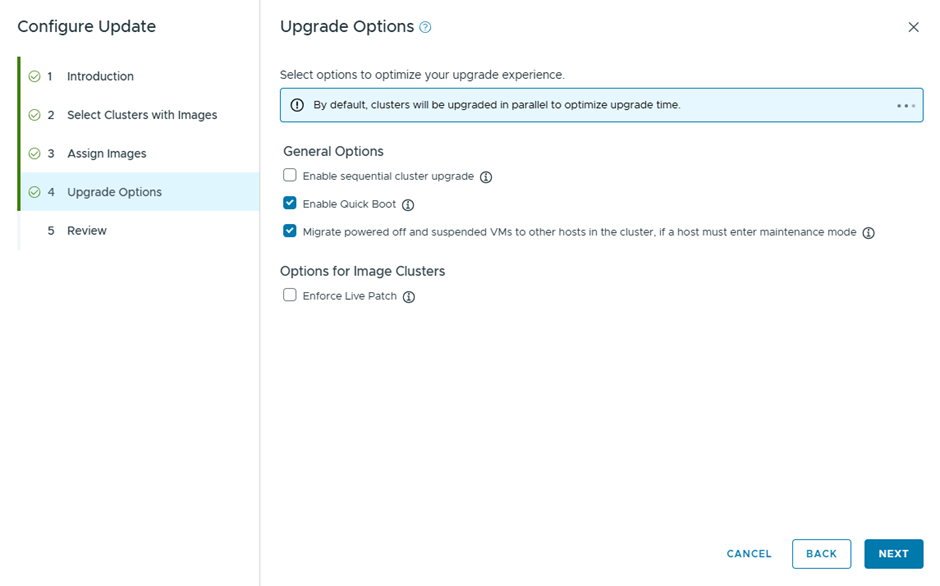 We are going basically to upgrade vCenter and ESX only , since NSX was already deployed during Workload import with the recent version