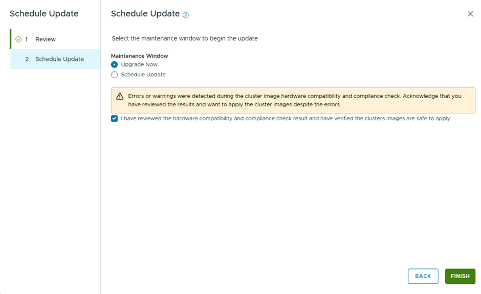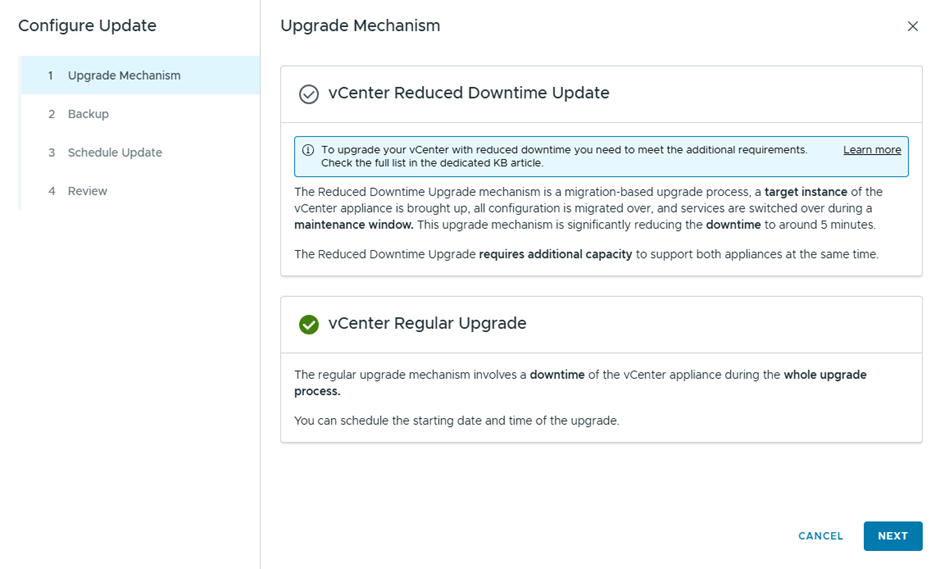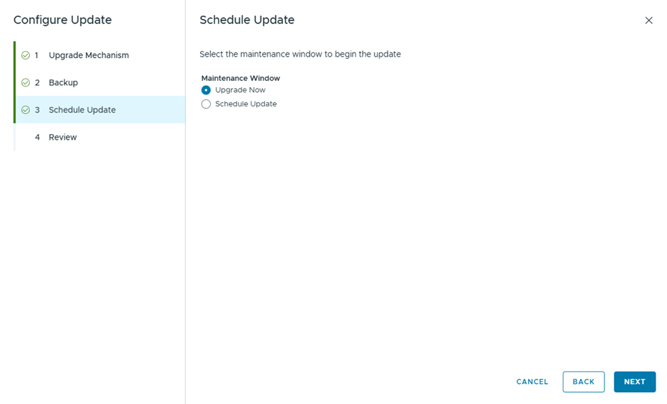 Select Upgrade now, to start the vCenter Upgrade instantly